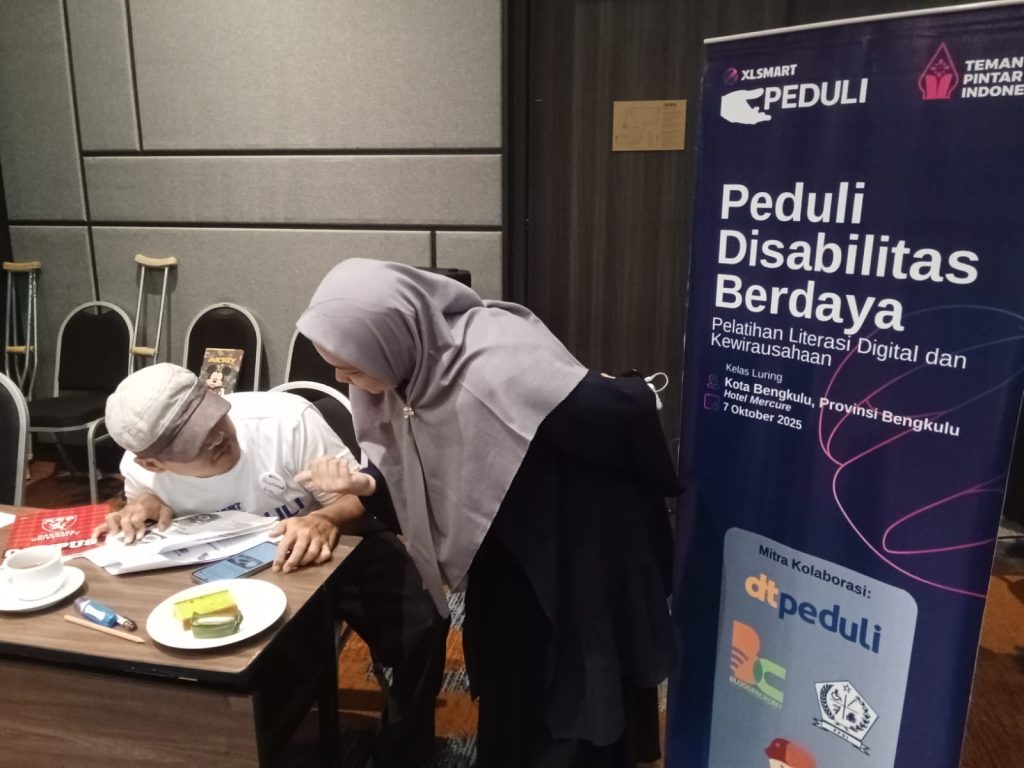 Hari Selasa, 7 Oktober 2025 lalu, saya berkesempatan menghadiri Kegiatan XLSMART Peduli Disabilitas Berdaya 2025 yang digelar di Hotel Mercure Bengkulu. Acara ini berlangsung hangat dan penuh makna. Dihadiri oleh tiga belas orang teman tuli dan dua belas orang teman daksa, dari berbagai komunitas seperti Perkumpulan Penyandang Disabilitas Indonesia (PPDI), Komunitas (Disabilitas) Kitasama Kota Bengkulu. Mereka terlihat sangat antusias mengikuti pelatihan AI untuk Promosi UMKM yang mereka geluti.