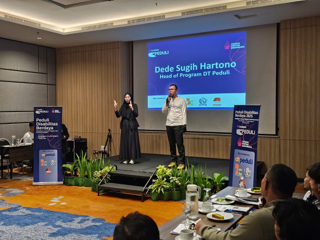 Acara ini juga diisi dengan sesi pelatihan yang menghadirkan pemateri inspiratif seperti Dr. Dani M. Akhyar, S.T., M.Si, Head of Corporate Communication & CSR XLSMART, dan Milda Ini, Trainer AI & Coding. Para peserta dari kalangan penyandang disabilitas tuli dan daksa terlihat antusias mengikuti kegiatan dan aktif berdiskusi seputar strategi pemasaran digital serta pengelolaan usaha berbasis teknologi.